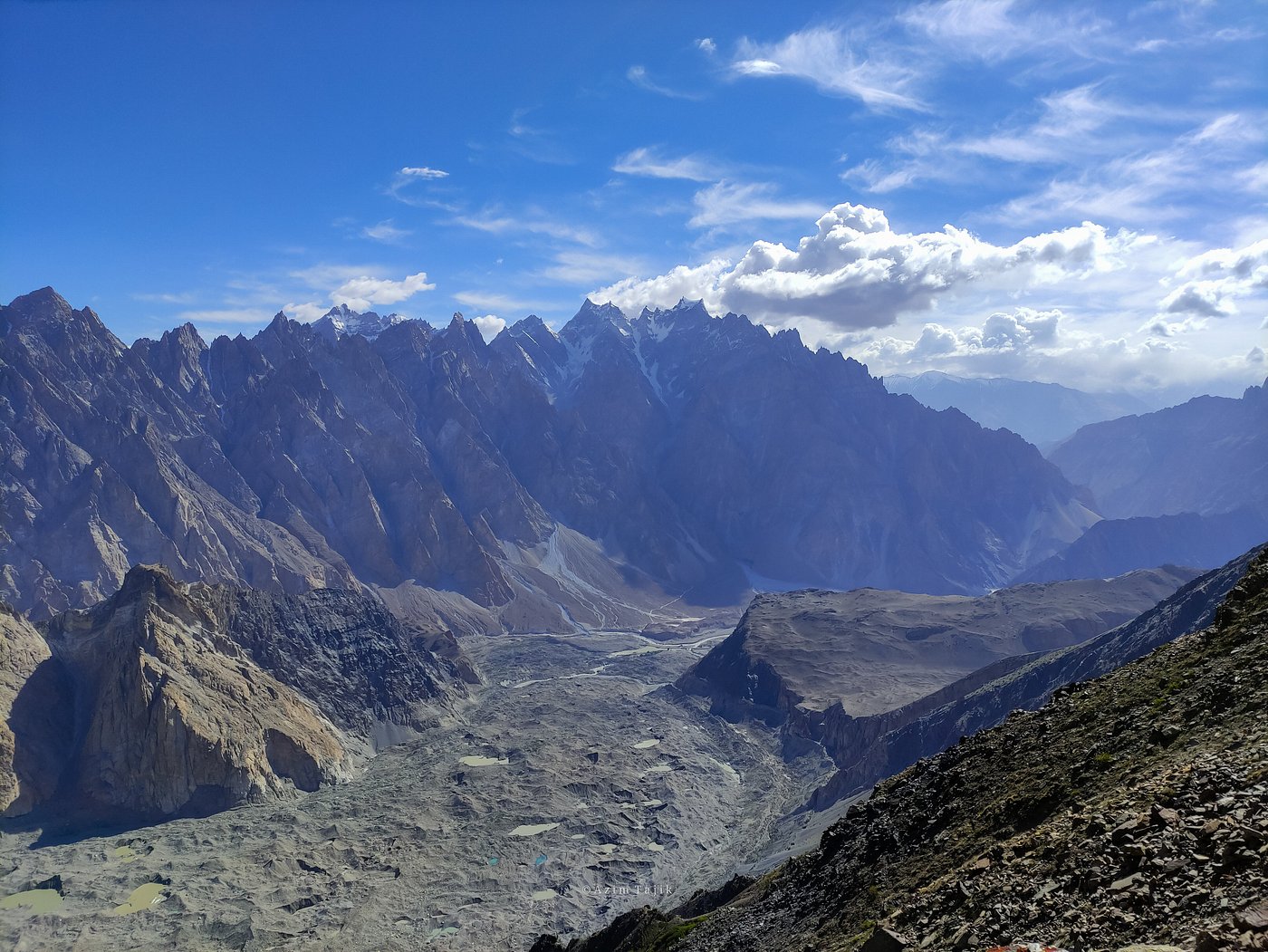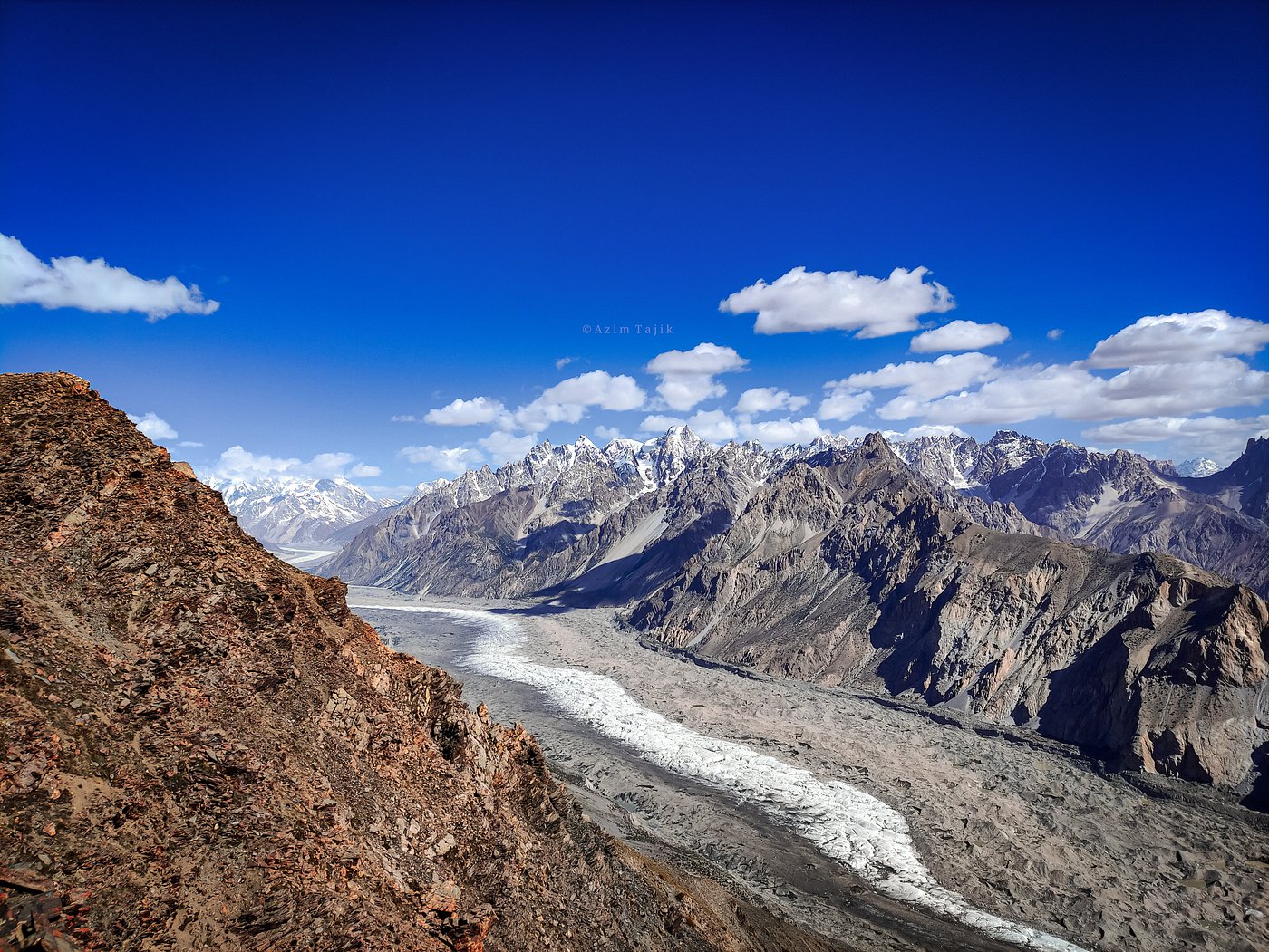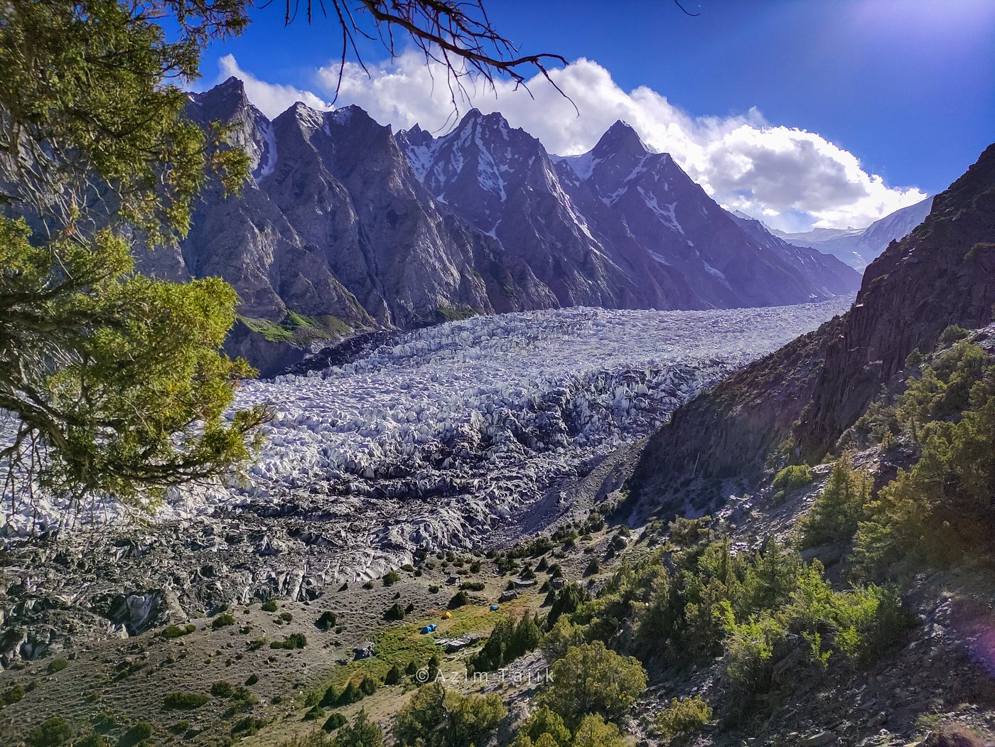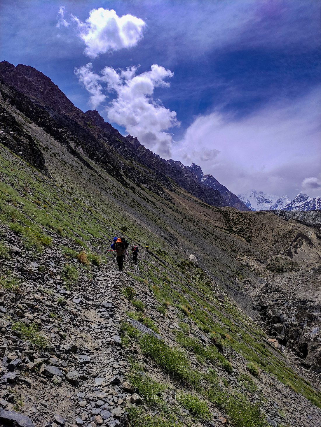 We continue the trek to Lazhdar before approaching Lazhdar we have to cross the Passu white Glacier. The whole trek is 3 – 4 hours. Lazhdar is an unused pasture at 3400 m. Overnight camping at Luzdhar.